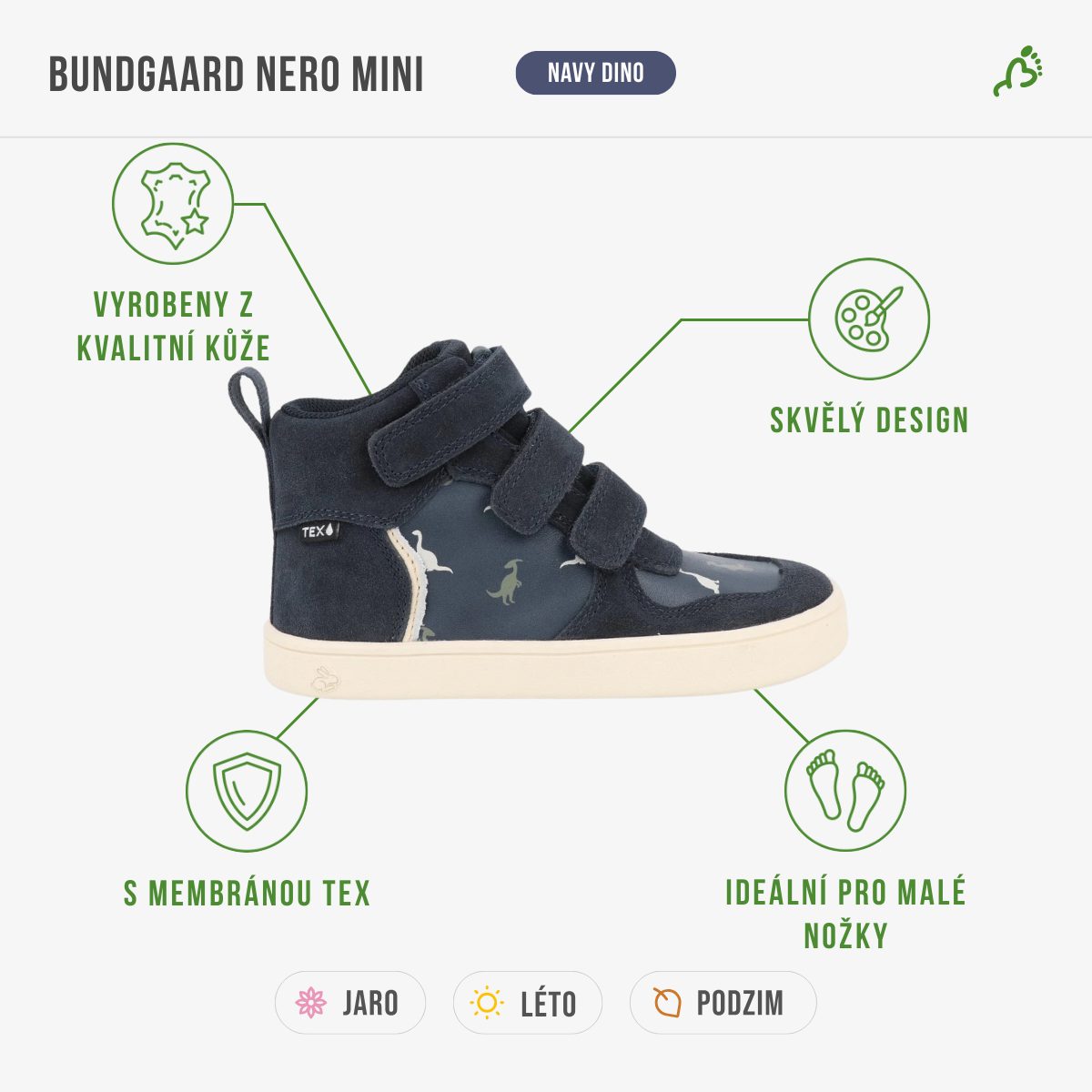 Díky praktickému zapínání na suchý zip se boty snadno nazouvají a přizpůsobují noze. Plochá podrážka podporuje přirozené postavení chodidla, zdravý pohyb a posiluje svaly nohou.