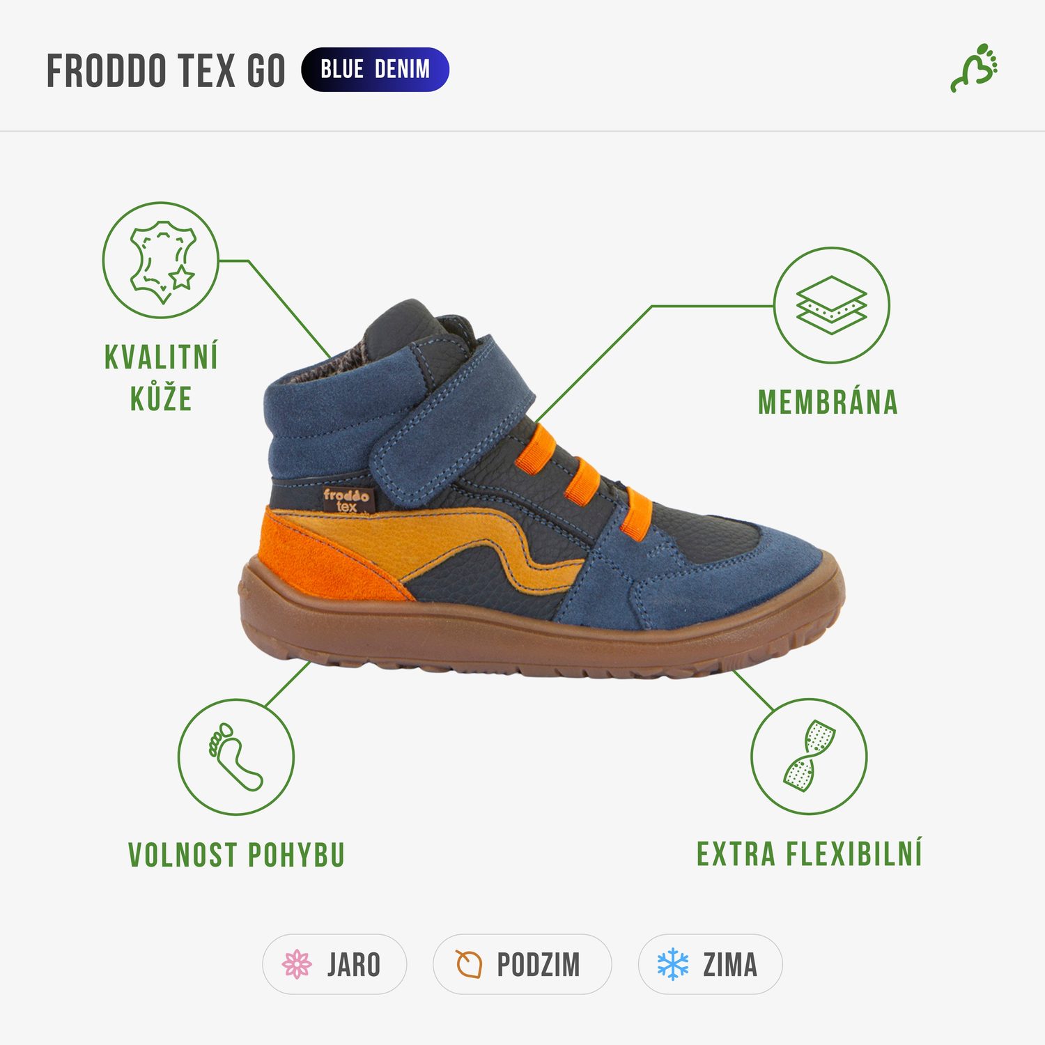 FRODDO TEX GO Blue Denim | Dětské celoroční barefoot boty