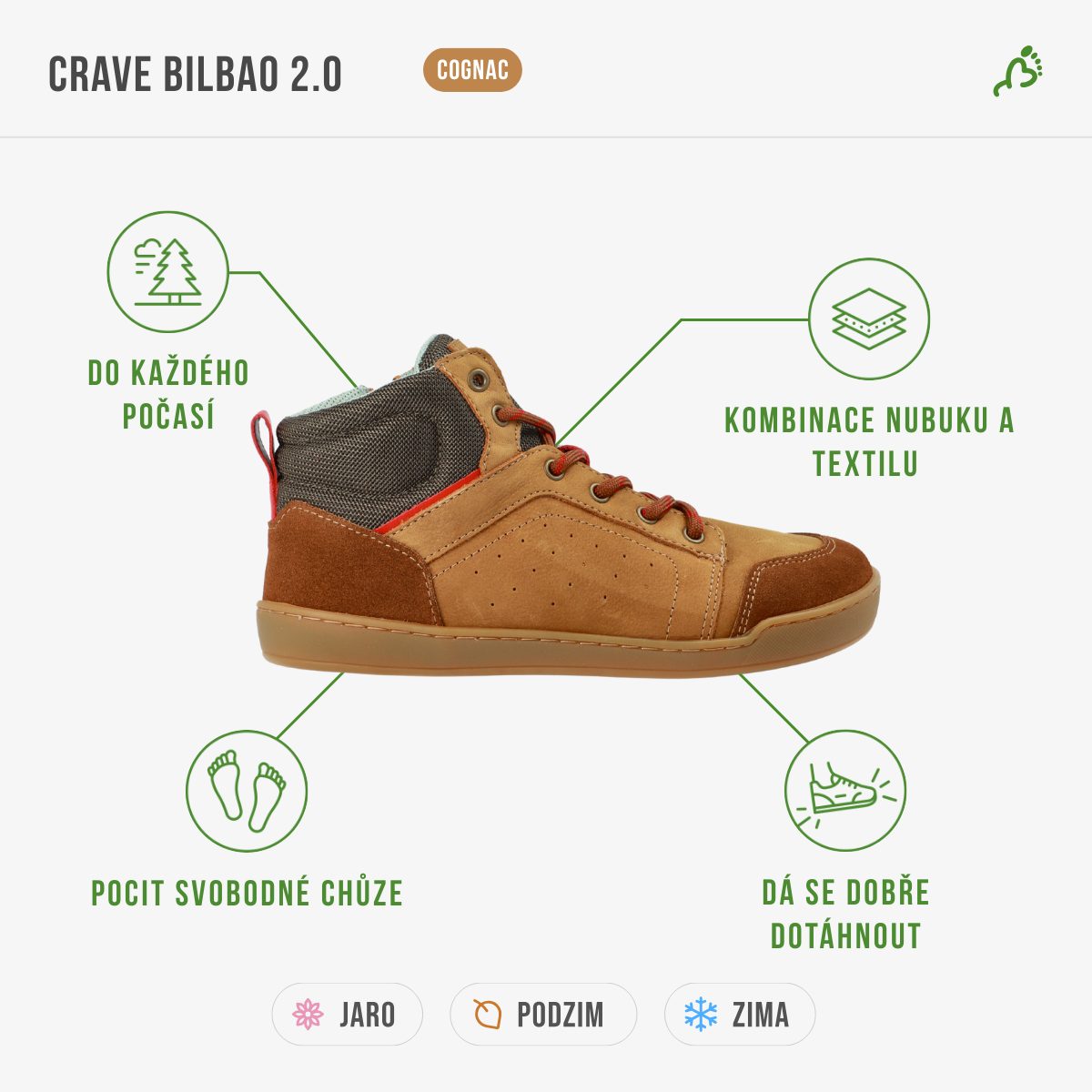 CRAVE Bilbao – hledáte univerzální městské boty, které vás spolehlivě provedou každým počasím? Dopřejte svým nohám svobodu přirozeného pohybu díky anatomickému tvaru se širokou špičkou, lehké flexibilní konstrukci a kombinaci nubukové kůže a textilu.
