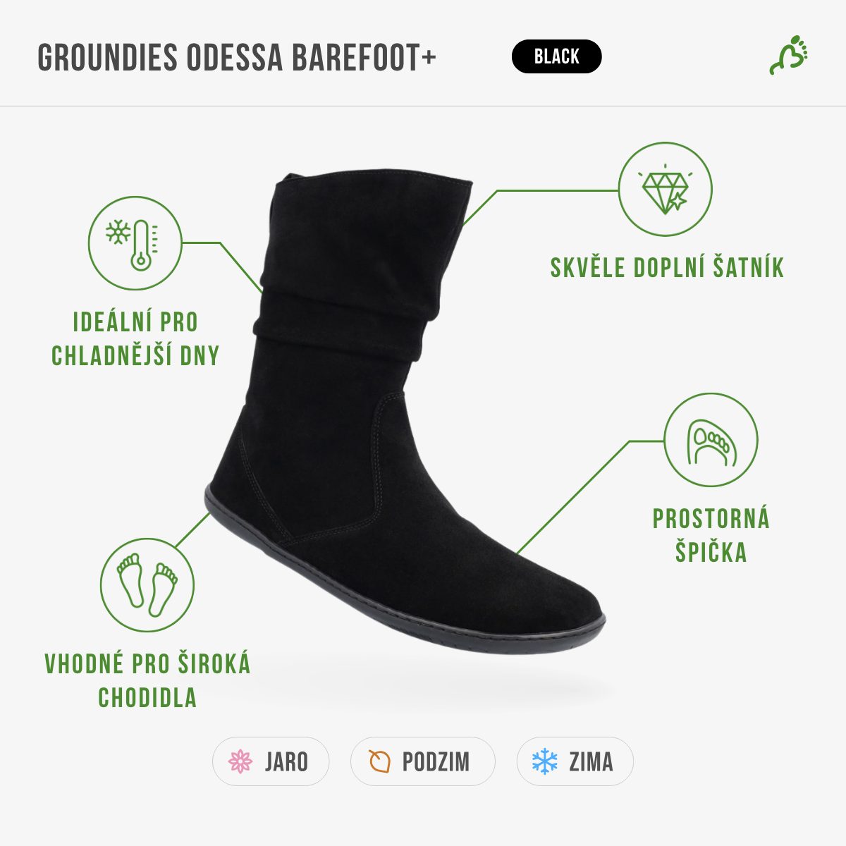 Model Odessa Barefoot+ vám zajistí naprosté pohodlí i během chladných podzimních a zimních dnů. Tyto nízké barefoot kozačky z měkké velurové kůže můžete snadno kombinovat se sukní, šaty i úzkými džínami.