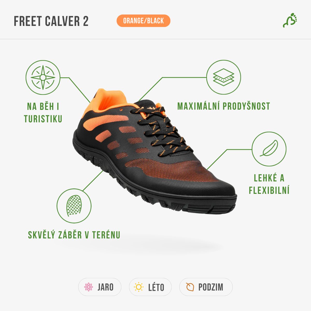 Model Calver 2 je výkonnostní barefoot obuv vhodná pro běh i turistiku na stezkách i mimo ně. Poskytuje výbornou přilnavost v blátivém terénu i ve strmějších pasážích.