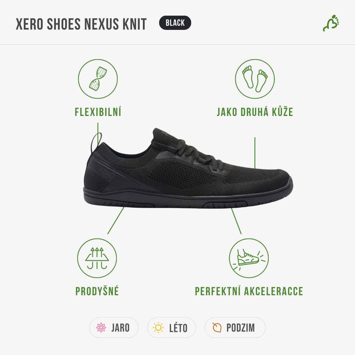 Ano, model Nexus Knit splňuje všechny zásady barefoot obuvi – nulový drop, flexibilní a tenká podrážka a anatomická špička poskytující dostatek prostoru pro prsty.