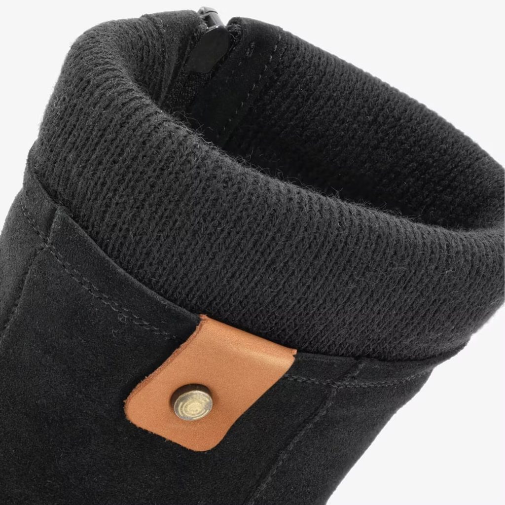 Flexibilní podrážka zajišťuje přirozený kontakt se zemí i v zimních podmínkách. Postranní zip usnadňuje nazouvání a pletený lem dodává botám elegantní vzhled.