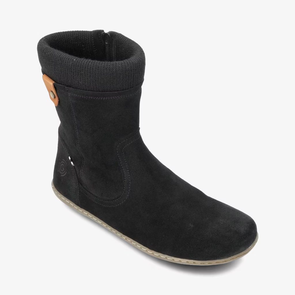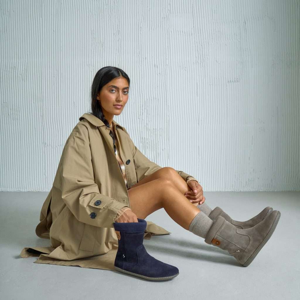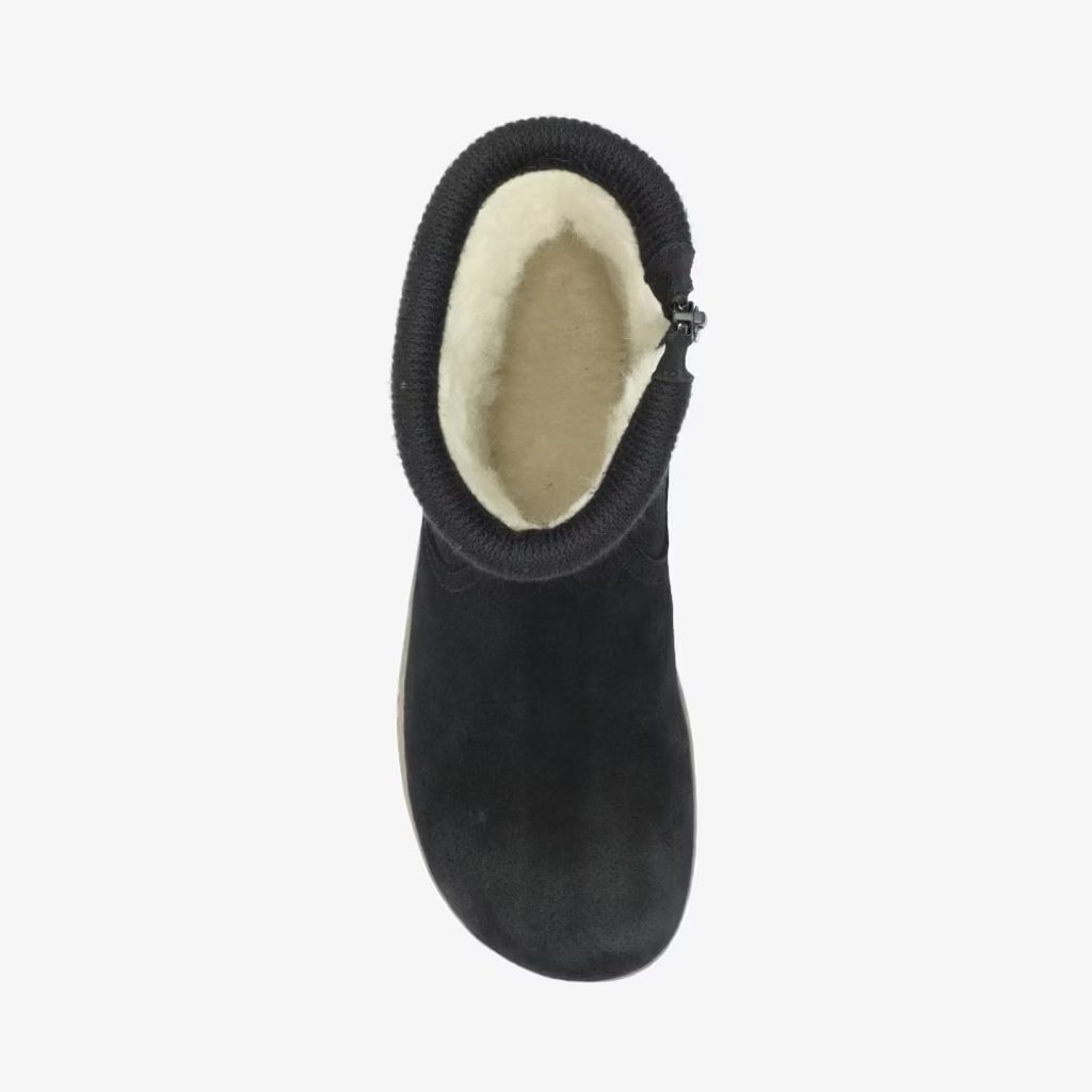 Groundies Iceland je symbolem zimního komfortu a přirozené volnosti. Tento stylový barefootový zimní model spojuje pocit chůze naboso s dokonalým teplem díky hřejivé vlněné podšívce a měkkému semišovému svršku.
